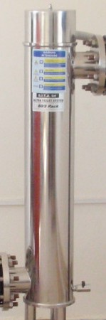 O reactor UV é construído totalmente em Aço Inoxidável AISI304 ou 316L, polido internamente e externamente, aumentando a acção germicida das lâmpadas.